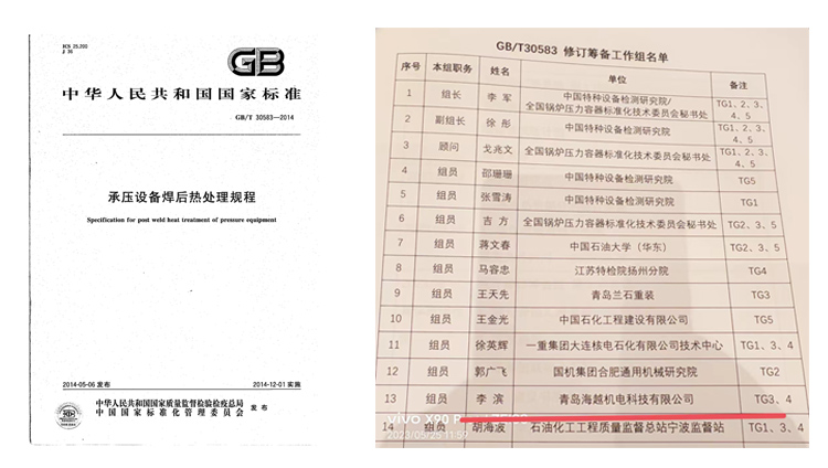 青島海越參與國家標準GB/T 30583《承壓設(shè)備焊后熱處理規(guī)程》修訂